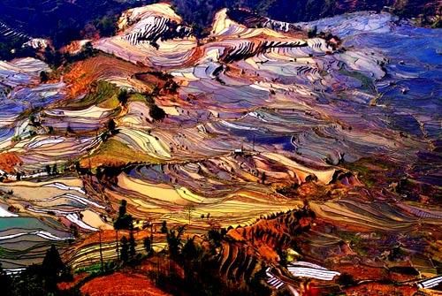 ◆大约从十四世纪起,梯田的垦殖技术已经遍布中国和东南亚地区,但无论是在规模还是审美的层面,绝少有地方能与元阳的梯田相媲美,当地人在哀劳山的深处,开辟出层叠起伏的梯田,被世人誉为“山岳神雕手”。