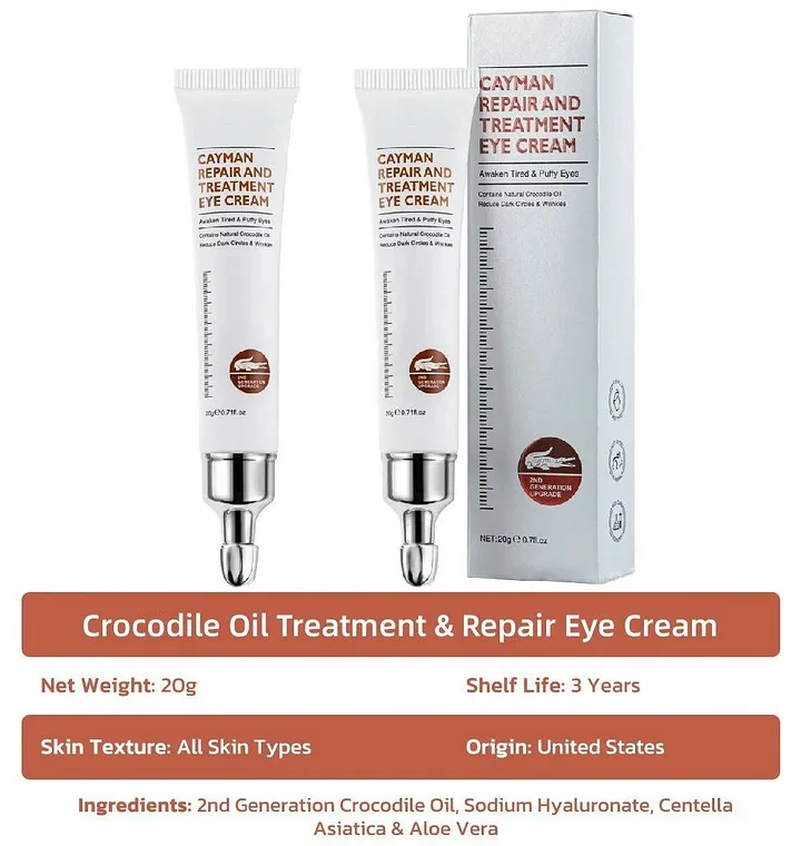 Crocodile Oil Treatment & Repair Eye Cream is formulated with a safe, gentle tissue-tightening agent which lifts away 83% of fine lines and deep wrinkles instantly! It can effectively restore the plump and healthy elasticity of the pouch and wrinkles, and suitable for long time use.