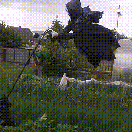 The spooky hanging ghost is made of environmentally and durable material combination, light, suitable for outdoor decoration. This horrific ghost face scarecrow is sure to terrify birds, deer, and even your neighbors!