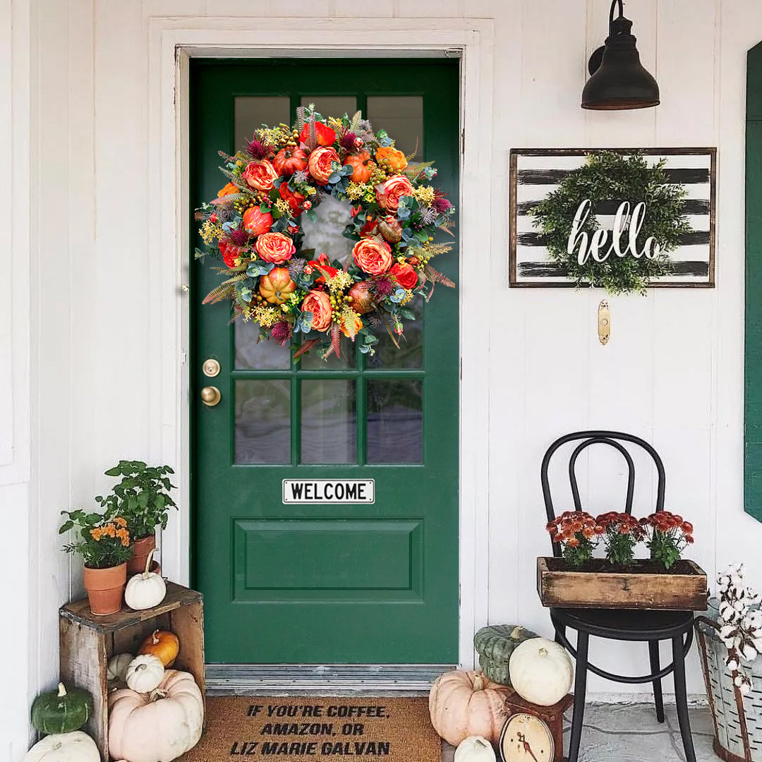 â€ïžWhat a beautiful way to welcome folks into your space!â€ïžThe Peony pumpkin is the most classic front door decoration this fall! đ„The perfect combination of Farmhouse, Country, and Rustic in one wreath to adorn your door all Autumn long! đ Enjoy autumn, never going out of style. Will add charm and joy to your decoration!
