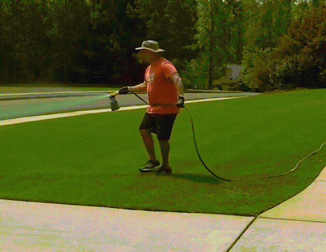 The pressure of the hose can give the grass seed some penetration into the soil, giving the grass a better chance early in life. Most of us have had expensive grass seed fail enough times that we want an edge we can get. Birds also don’t like the mulch component of the spray-on seed so this helps give your baby grass a chance.