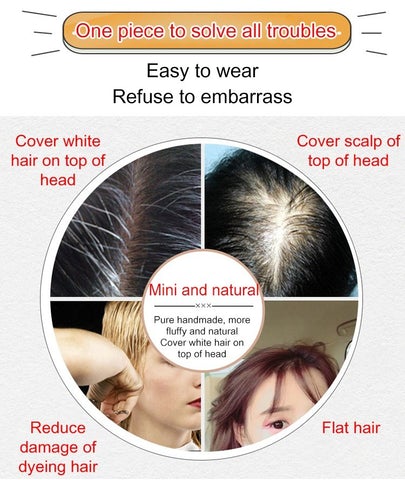 - COVERS UP SPARSE AND WHITE HAIR. It covers up those thin hair at the top of the head and those white hair!