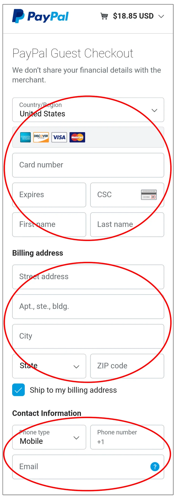 Enter your Payment details, Billing Address, and Contact Information.