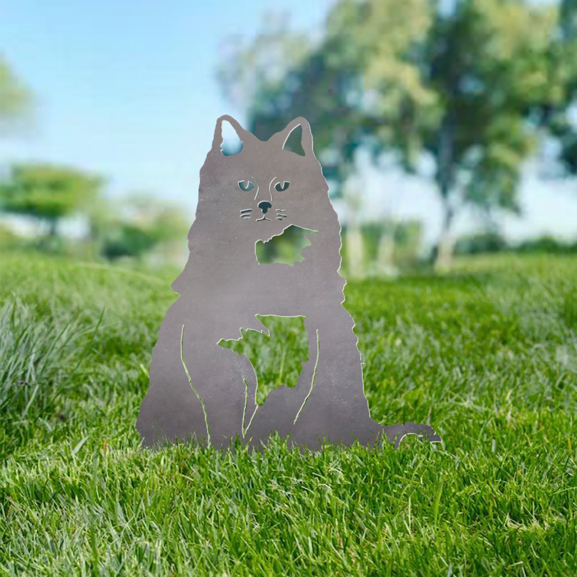 Longhair Cat Metal Silhouette
